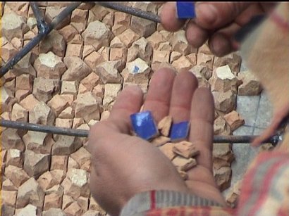Mosaiksteine werden mit dem Hammer bearbeitet Mosaic stones are made only by a hammer |