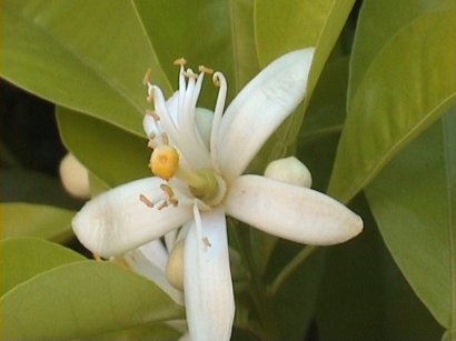 Eine Apfelsinenbluete A blossom of a orange tree |