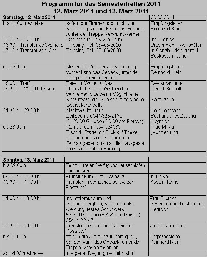 | Semestertreffen am 12./13. März 2011 in Osnabrück Anlass: 40 Jahre Gauß (1971 - 2011) |