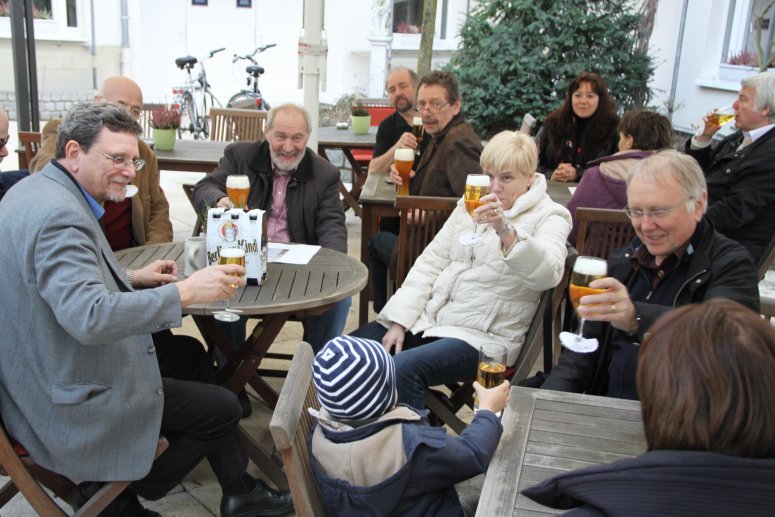 | Nach den Strapazen der Besichtigungstour laben wir uns an Getränken und Schmalzbroten. Foto: Klaus |