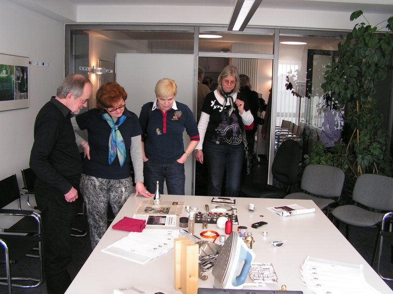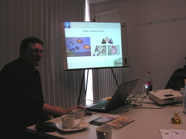 Im Vorraum gibt es leckere Brötchen und Getränke, im Besprechungsraum gibt es beschichtete Teile zur Ansicht. Foto: Ursula / Dieter |