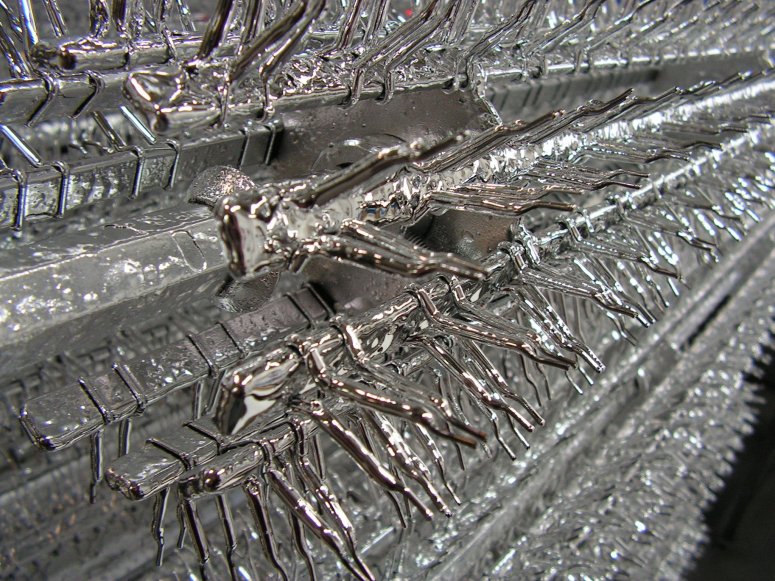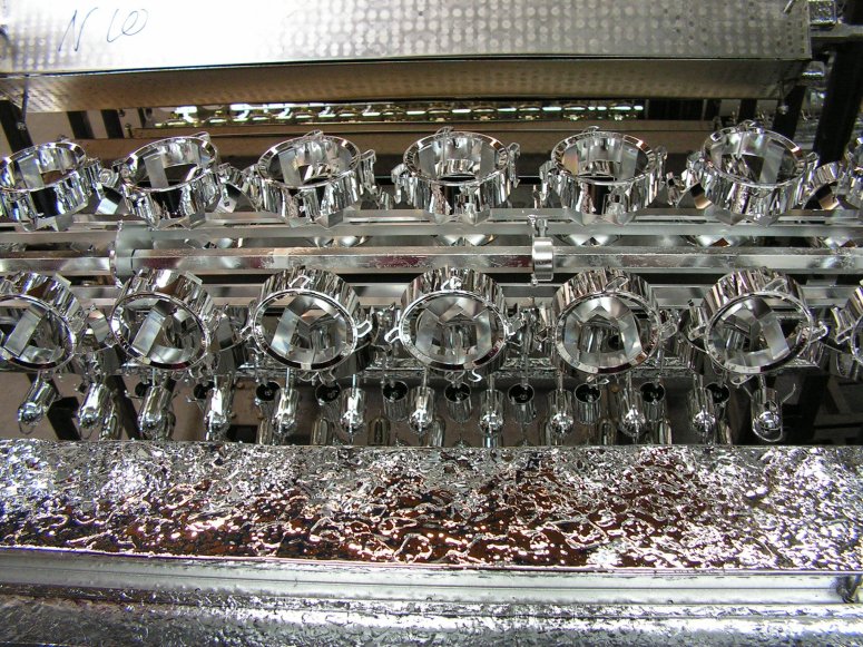Die Werkstückaufnahmen werden bei jedem Arbeitsgang auch mitbeschichtet. Foto: Ursula / Dieter |