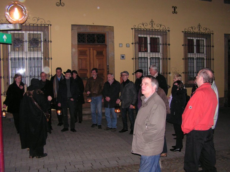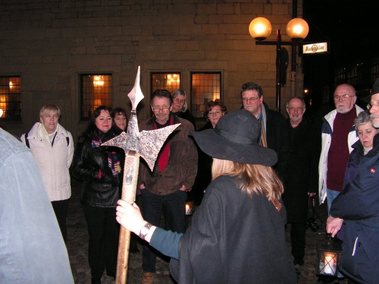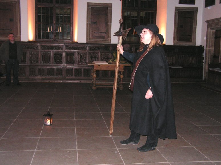 Eine Nachtwächterin erklärt die Aufgaben der Nachtwächter von früher ... Foto: Ursula / Dieter |