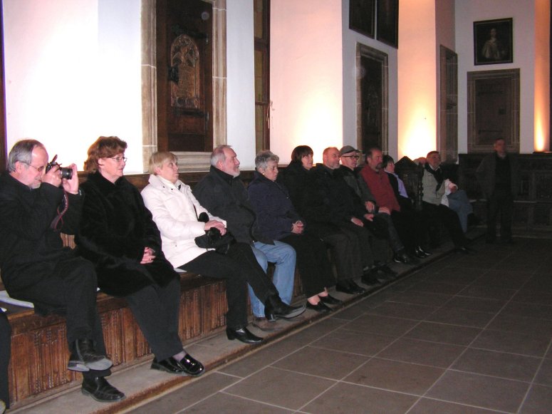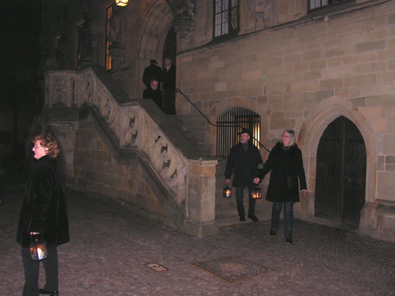 und bewundern den kunstvoll gefertigten Kronleuchter im Rathaussaal. Foto: Ursula / Dieter |