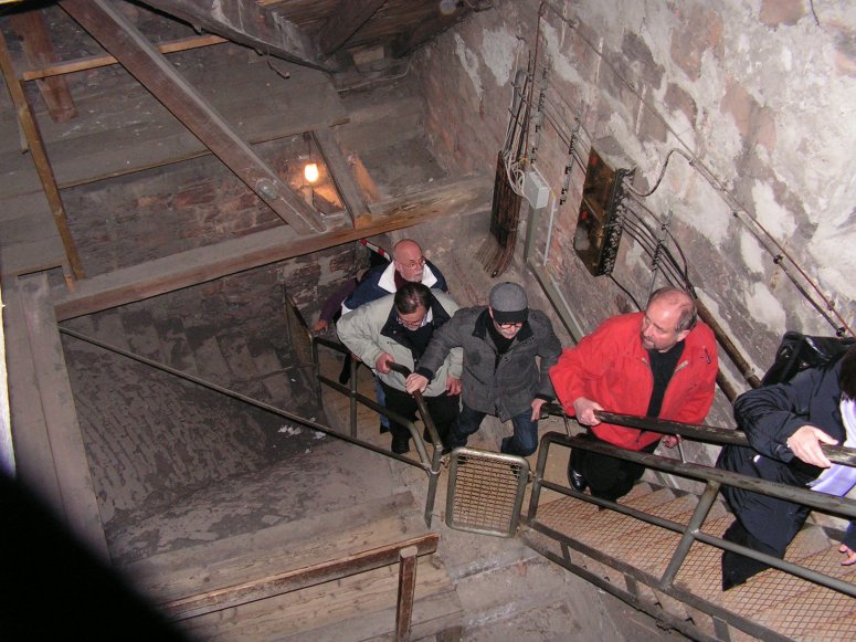 Dann ging es die enge Wendeltreppe hinauf bis unter die Kirchturmsptze. Foto: Ursula / Dieter |