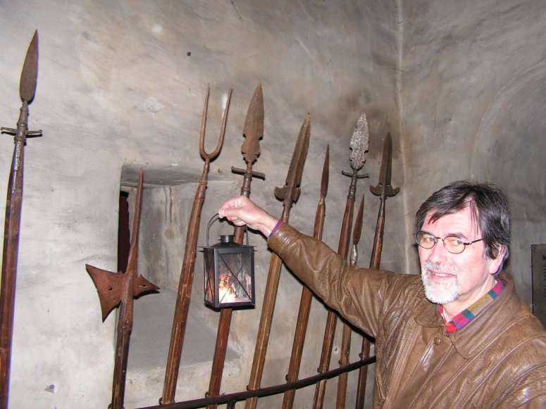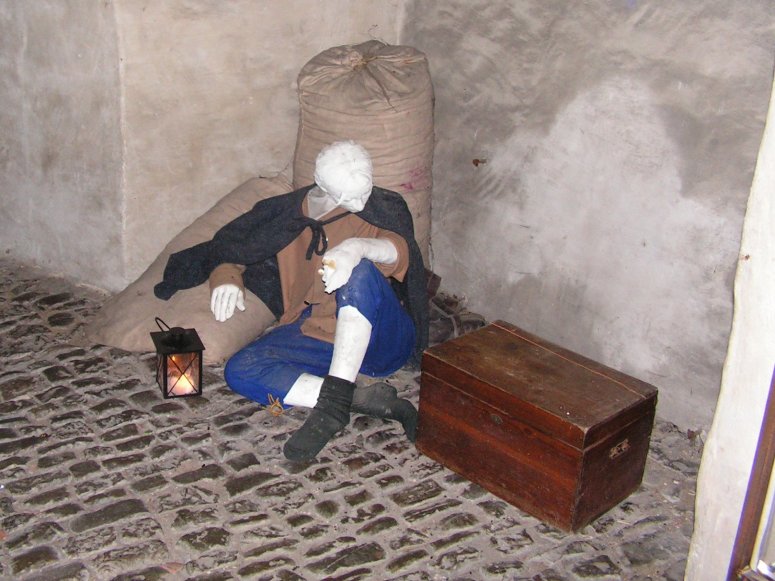 Im Turm befand sich ein Gefängnis aus dicken Holzbohlen. Ein Gefängniswächter ist heute noch zu sehen. Foto: Ursula / Dieter |