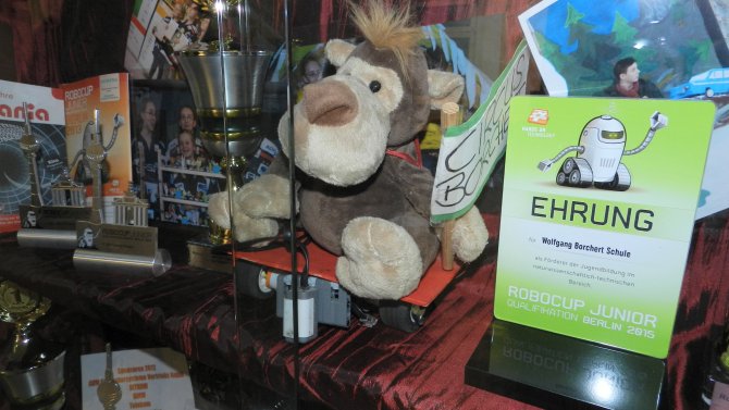 ![]() Das Plüschtier sitzt auf einem mobilen Roboter. Nur noch ein kleiner Schritt vom Robocup zum Robocop? |